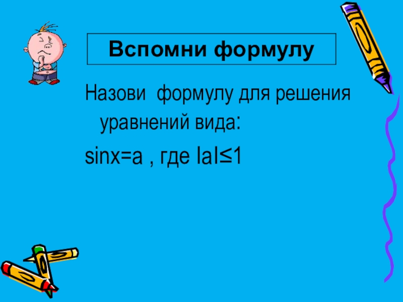 Назови формулу для решения уравнений вида: sinx=a , где ІаІ≤1
