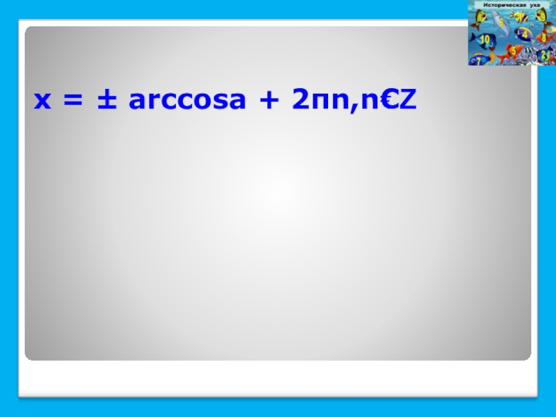 Слайд 16х = ± arccosа + 2πn,n€Z