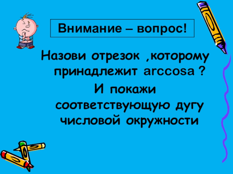 Слайд 9Назови отрезок ,которому принадлежит arccosa ?
