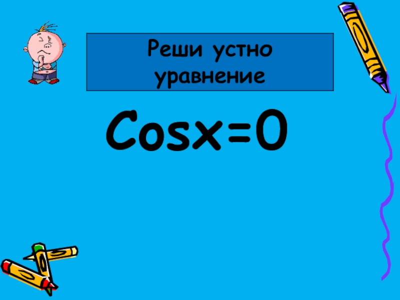 Слайд 3Cosx=0