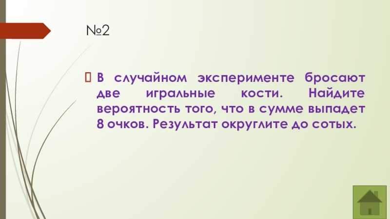 в сумме выпадет 8 очков. Результат округлите до сотых.