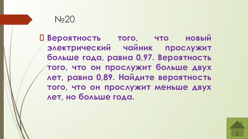 Вероятность того, что новый электрический чайник прослужит больше года, равна 0,97.