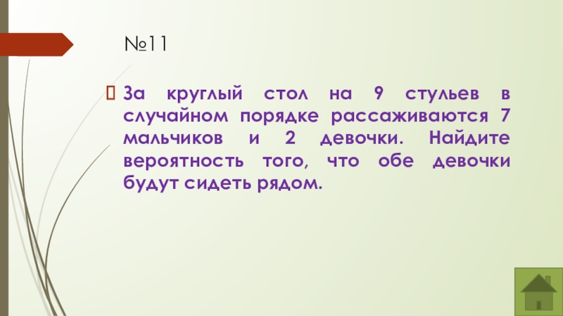 За круглый стол на 9 стульев в случайном порядке рассаживаются 7