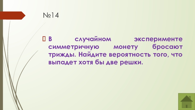 В случайном эксперименте симметричную монету бросают трижды. Найдите вероятность того, что