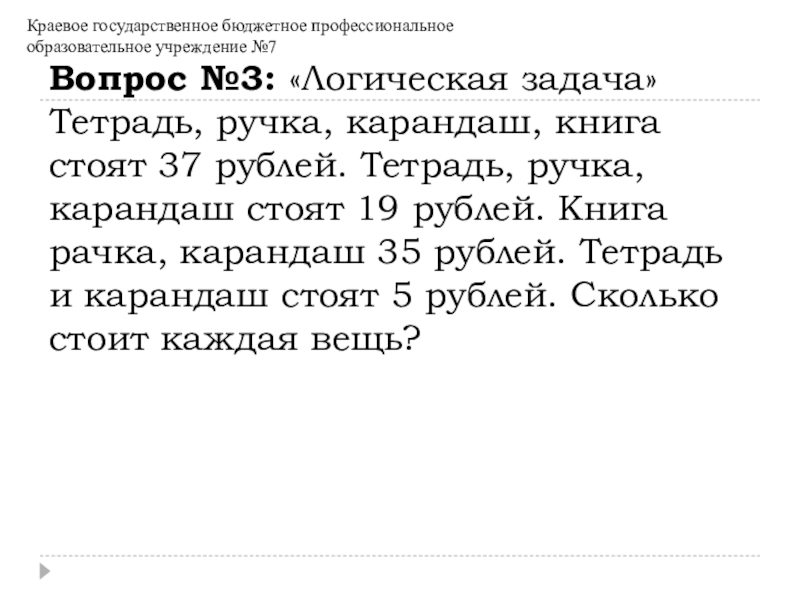 Краевое государственное бюджетное профессиональное образовательное учреждение №7