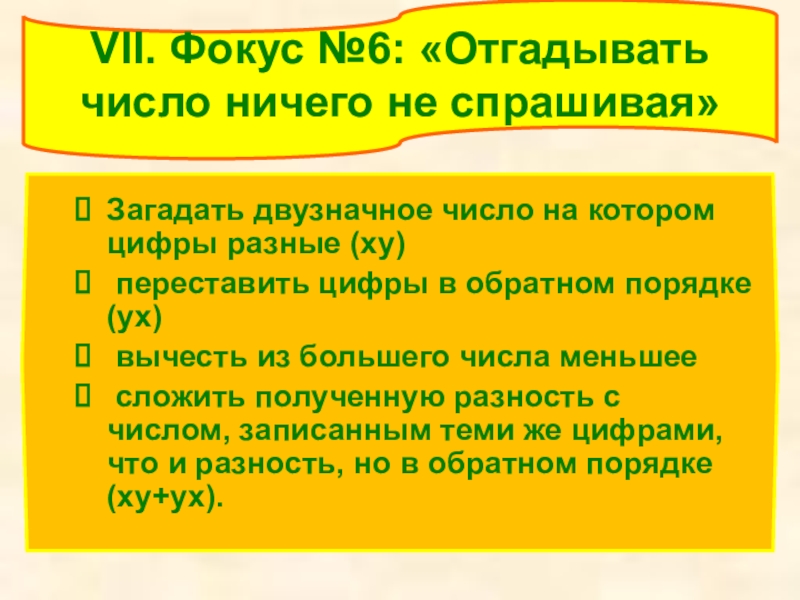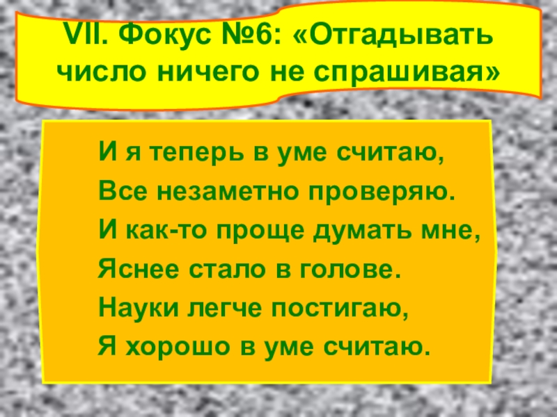 VII. Фокус №6: «Отгадывать число ничего не спрашивая»