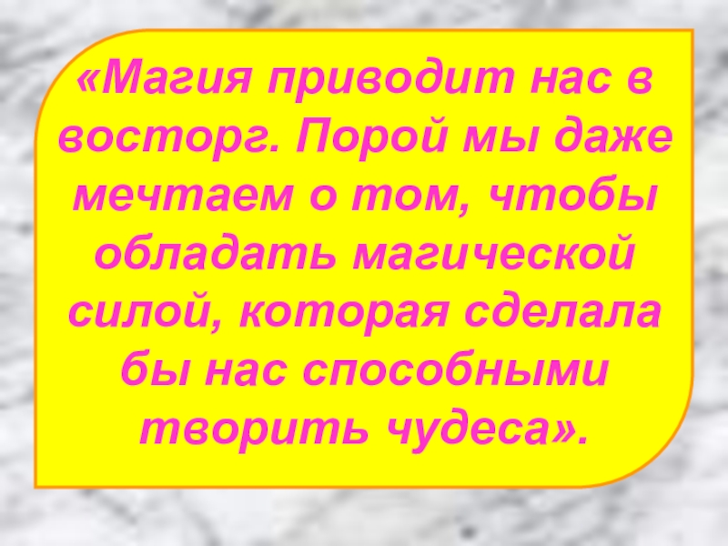 «Магия приводит нас в восторг. Порой мы даже мечтаем о том,