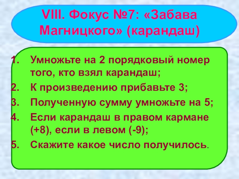 VIII. Фокус №7: «Забава Магницкого» (карандаш)