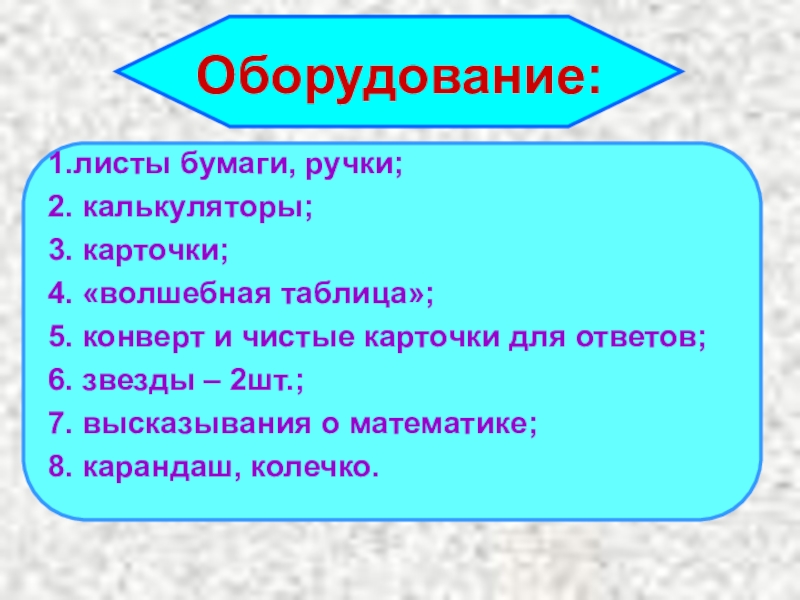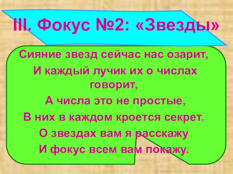 3. Вызвать положительные эмоции у учеников к устному счету, развивать навыки быстрого счета.