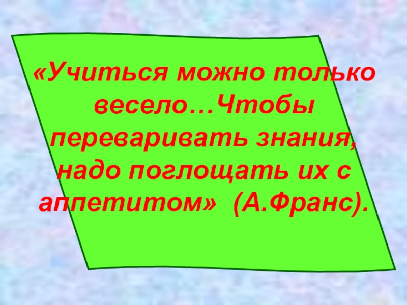 «Учиться можно только весело…Чтобы переваривать знания, надо поглощать их с аппетитом»