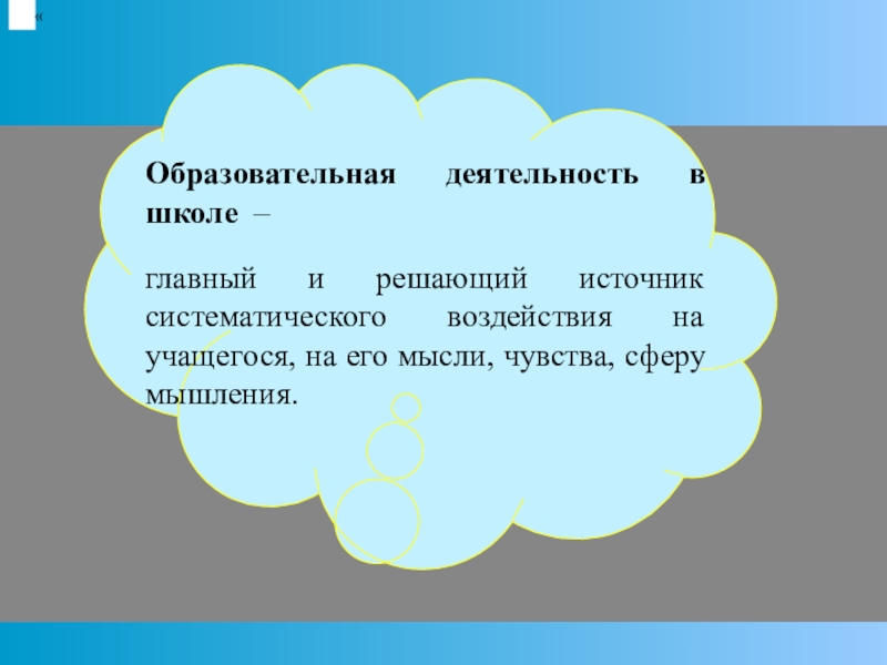 главный и решающий источник систематического воздействия на учащегося, на его мысли, чувства, сферу мышления.