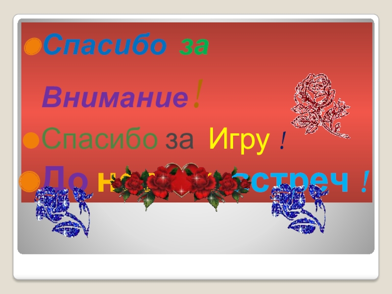 Спасибо за Внимание!Спасибо за Игру !До новых встреч !