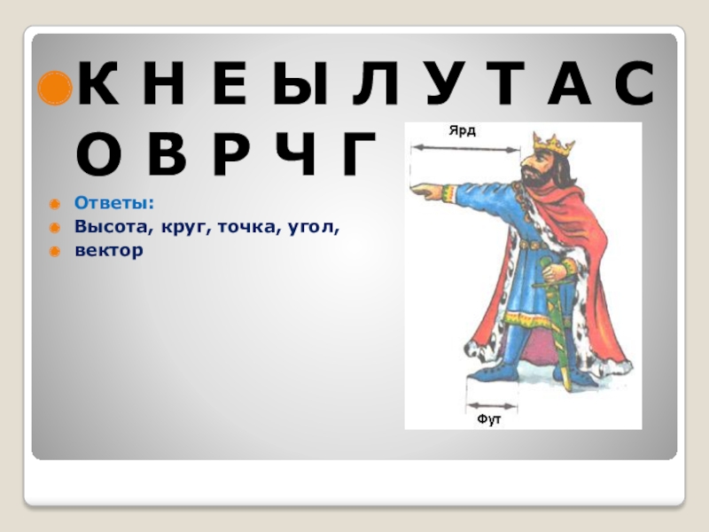 К Н Е Ы Л У Т А С О В Р Ч ГОтветы:Высота, круг, точка, угол,вектор