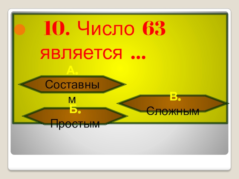 10. Число 63 является …А. Составным Б. Простым  В. Сложным
