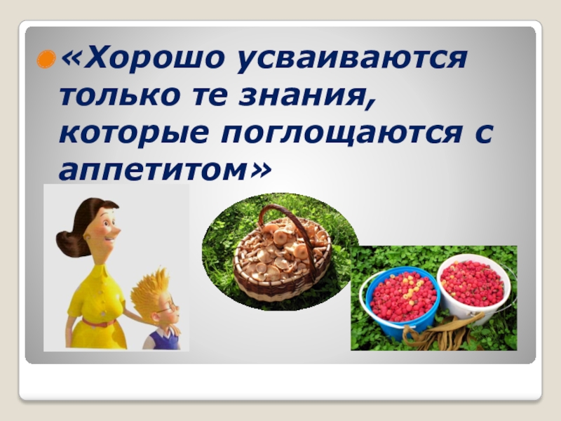 Слайд 4«Хорошо усваиваются только те знания, которые поглощаются с аппетитом»