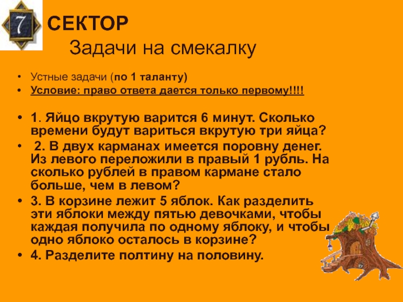 1. Яйцо вкрутую варится 6 минут. Сколько времени будут вариться вкрутую три яйца?