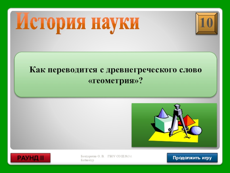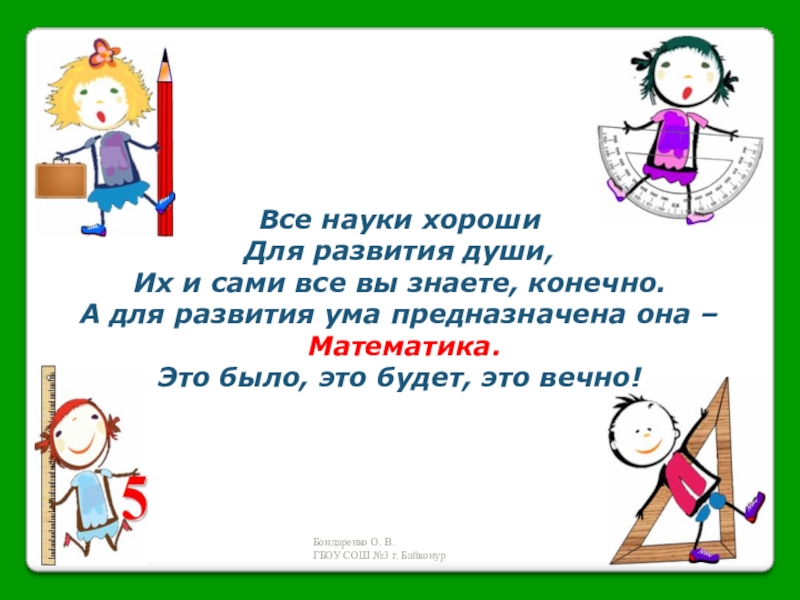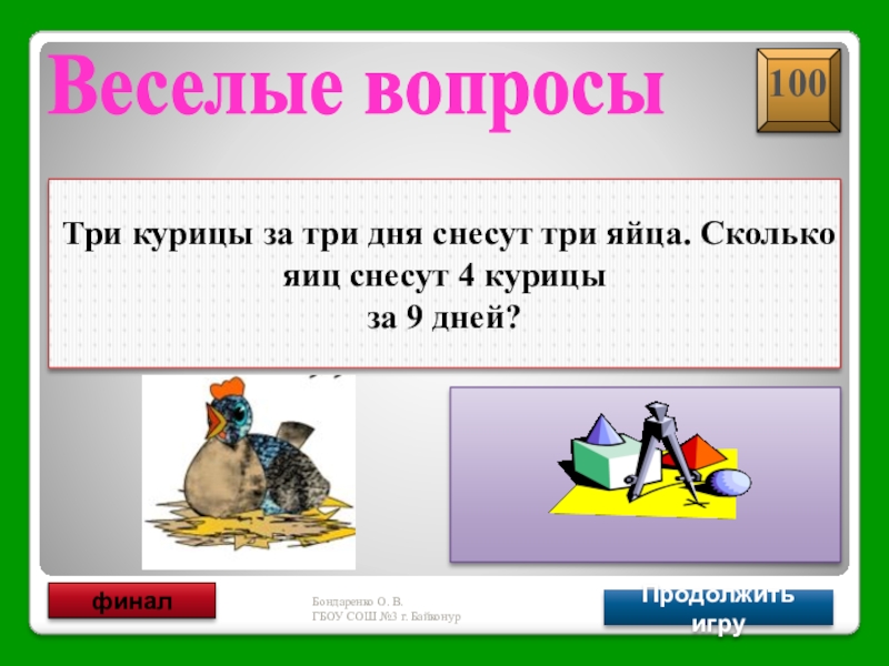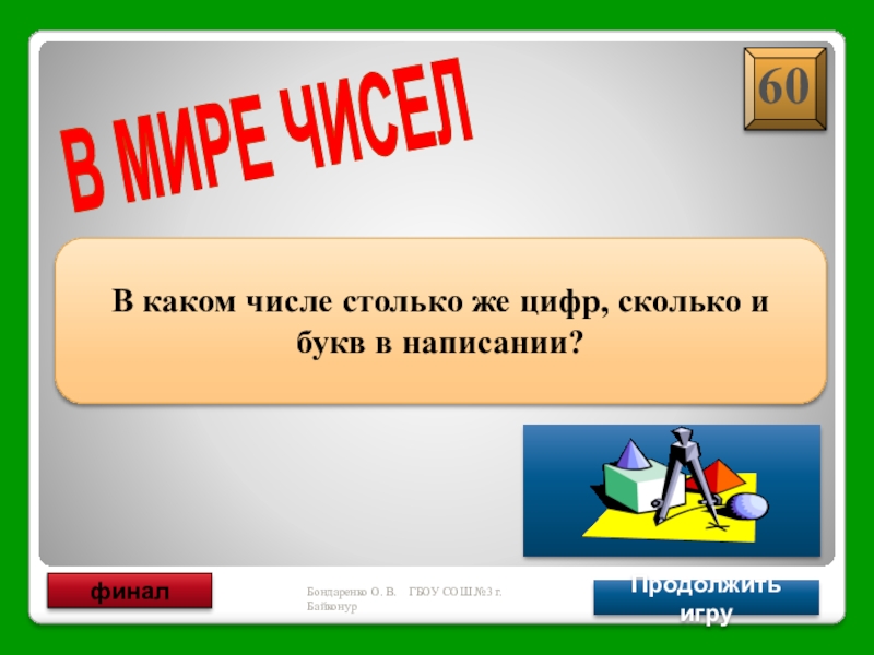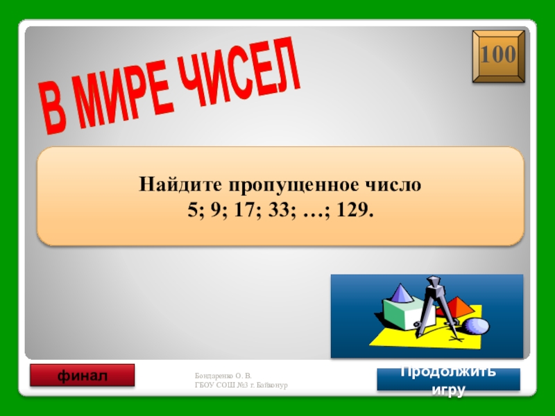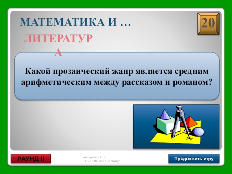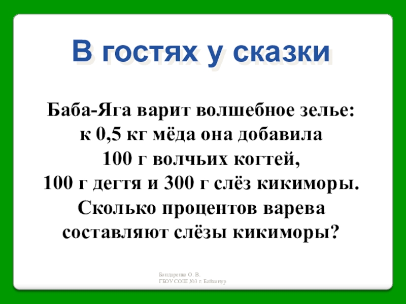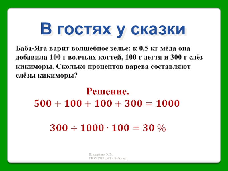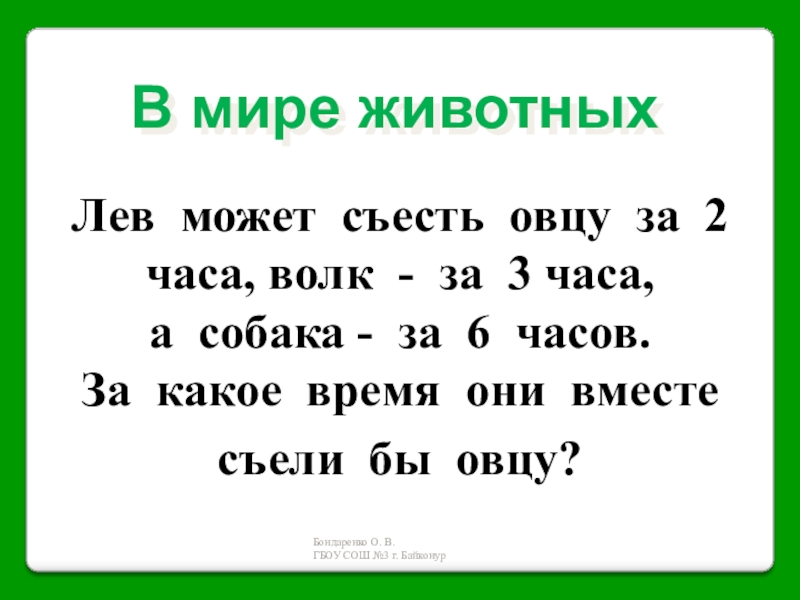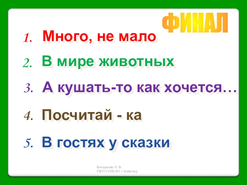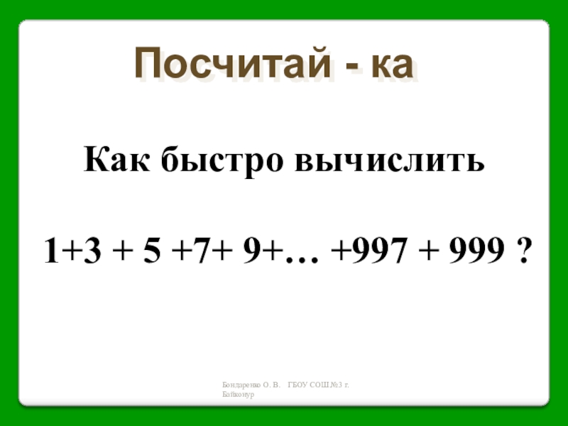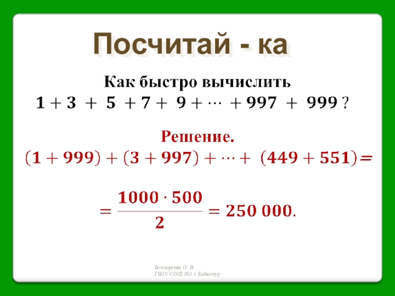 Бондаренко О. В. ГБОУ СОШ №3 г. Байконур