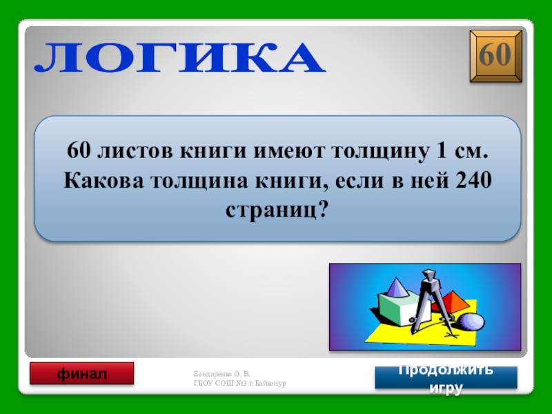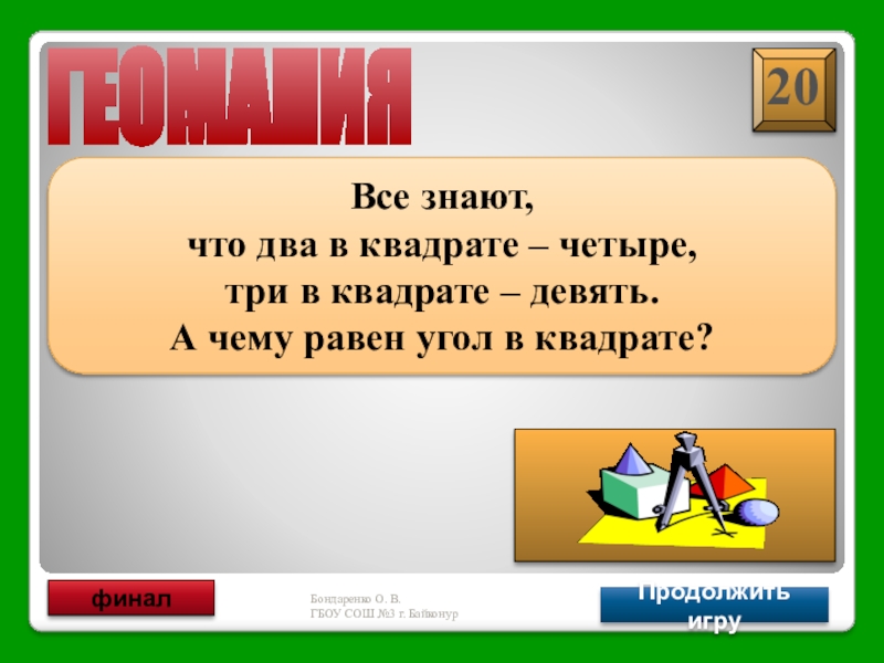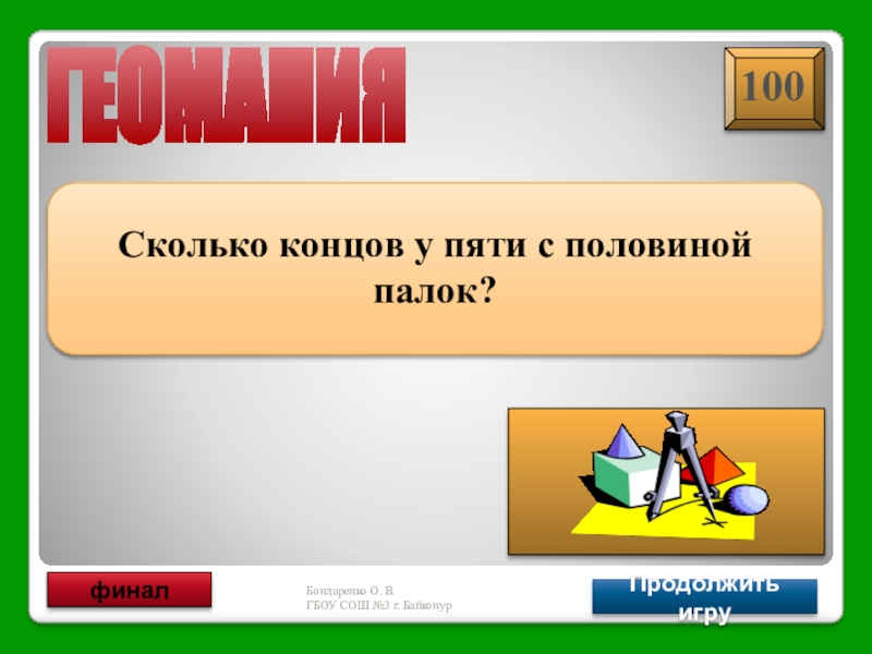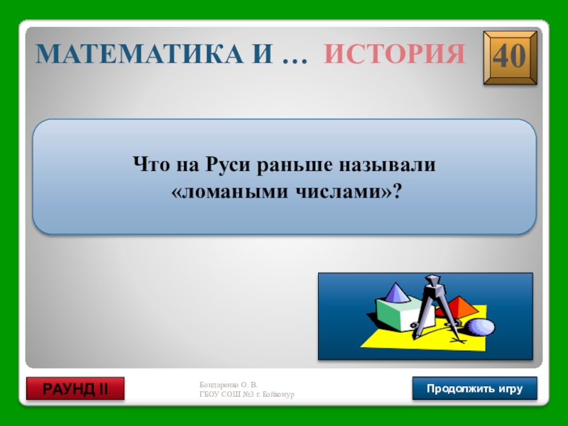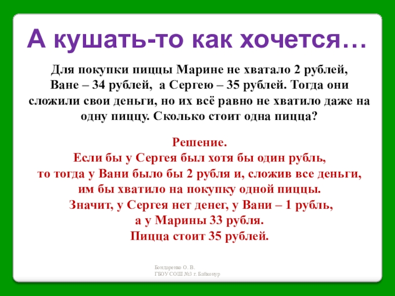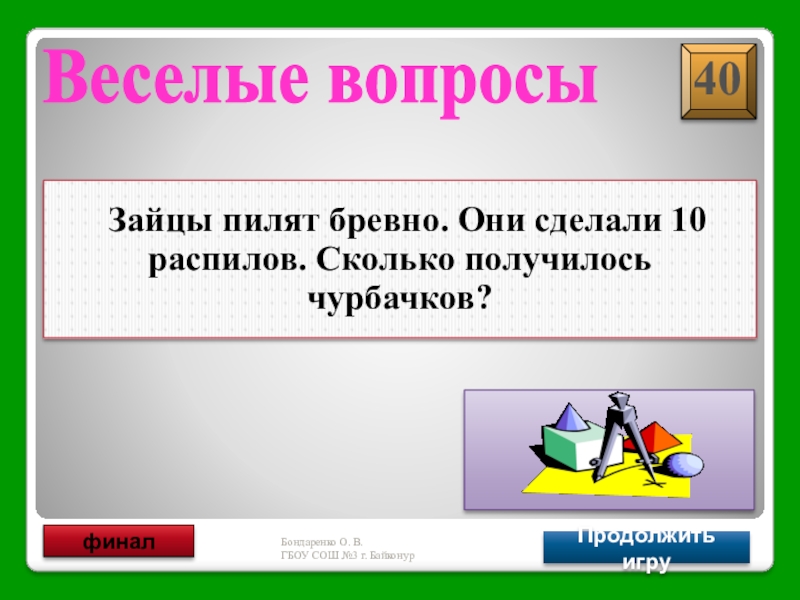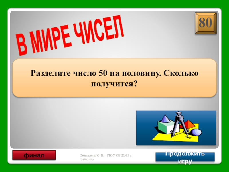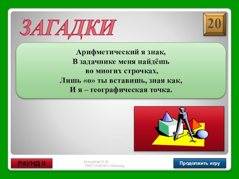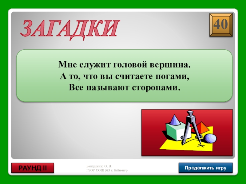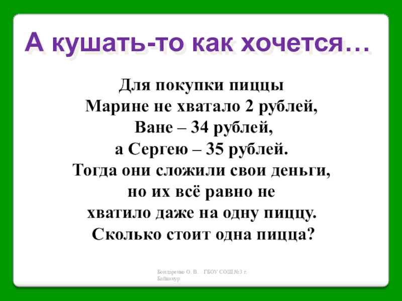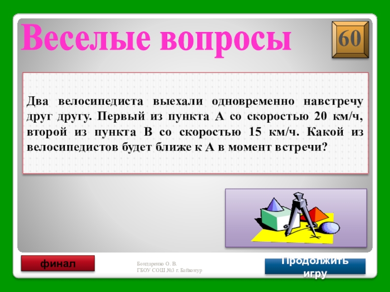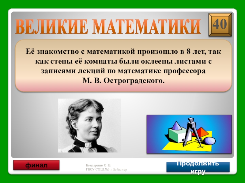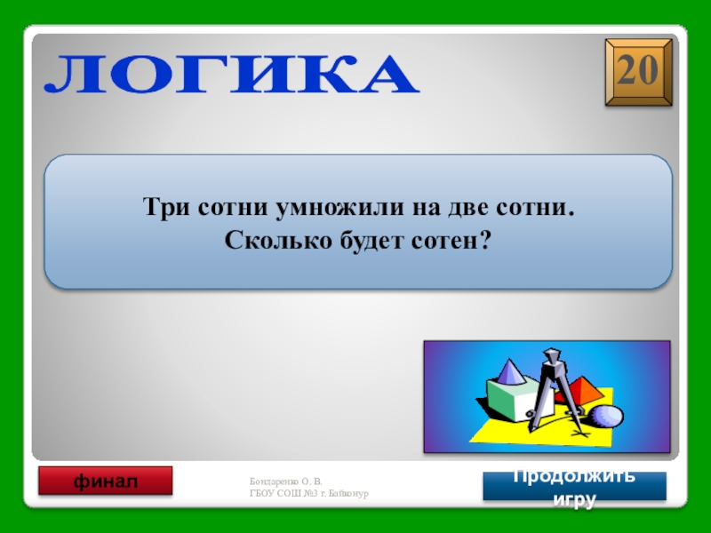 Бондаренко О. В. ГБОУ СОШ №3 г. Байконур