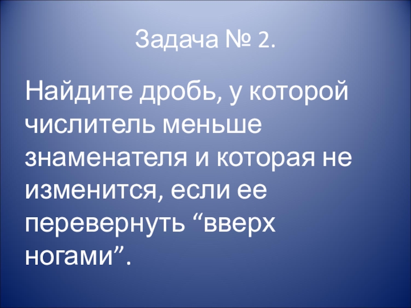 Задача № 2.Найдите дробь, у которой числитель меньше знаменателя и которая не изменится, если ее перевернуть “вверх