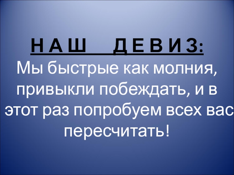 Слайд 2Н А Ш Д Е В И З: Мы быстрые