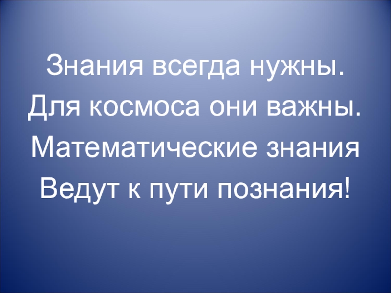 Знания всегда нужны.Для космоса они важны.Математические знанияВедут к пути познания!