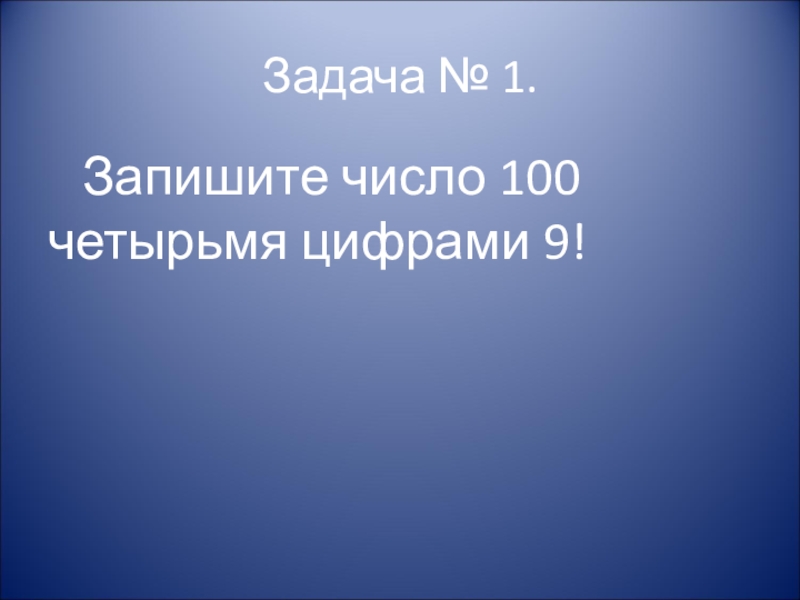 Задача № 1.   Запишите число 100 четырьмя цифрами 9!