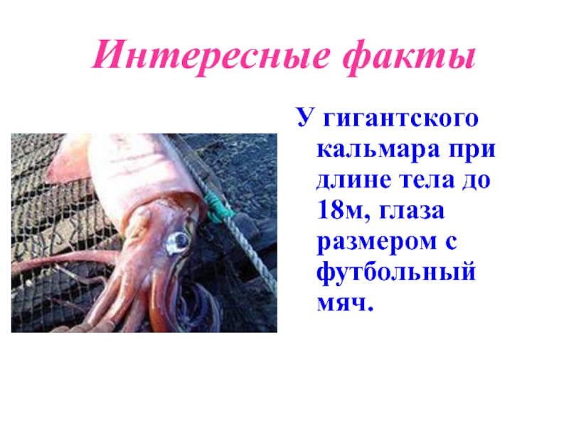 У гигантского кальмара при длине тела до 18м, глаза размером