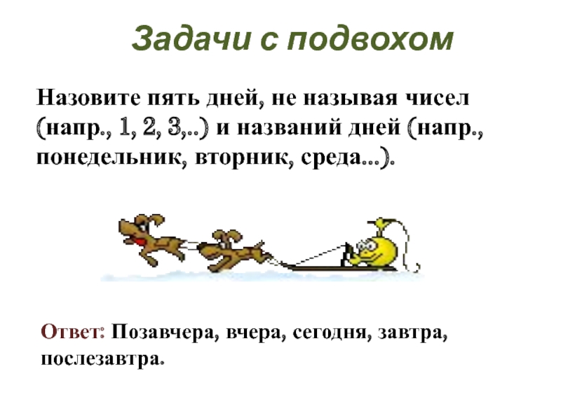 Назовите пять дней, не называя чисел (напр., 1, 2,