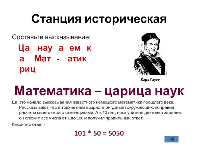 Да, это начало высказывания известного немецкого математика прошлого века. Рассказывают, что в трехлетнем возрасте он удивил окружающих, поправив расчеты своего отца с каменщиками. А в 10 лет, пока учитель диктовал задание, он сложил все числа от 1 до 100 и получил правильный ответ: