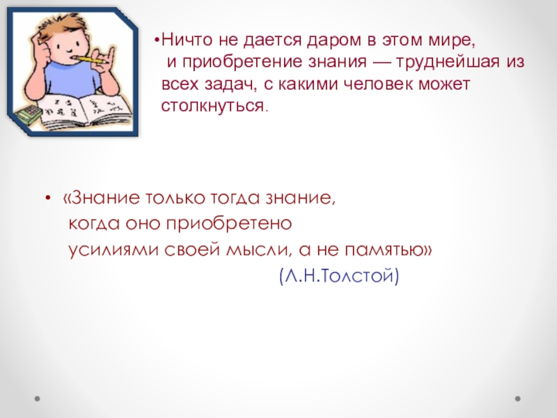 и приобретение знания — труднейшая из всех задач, с какими человек может столкнуться.