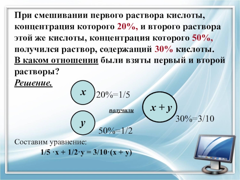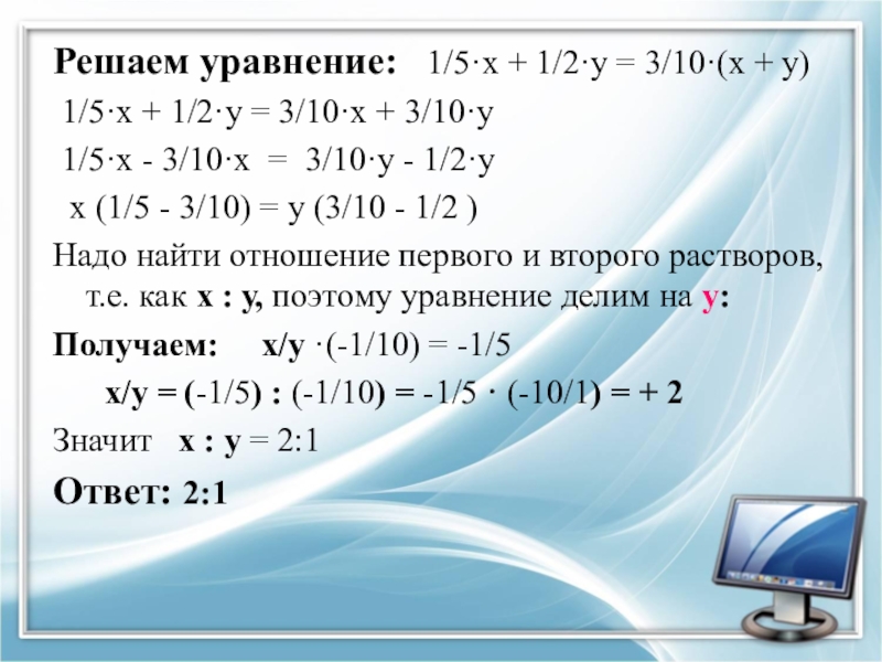 1/5 ·х + 1/2·у = 3/10·(х + у)