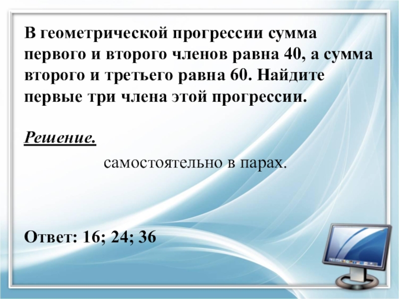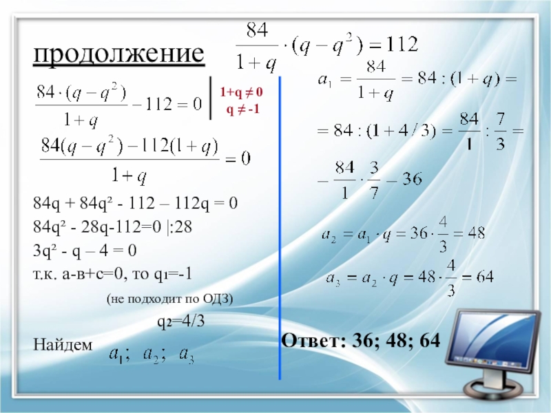 но (по опред.геом.прог.) а2= а1·q; а3= а1·q²,