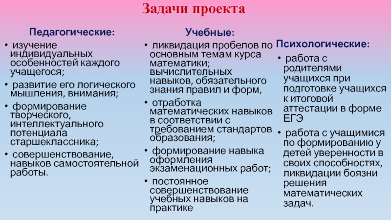 ликвидация пробелов по основным темам курса математики; вычислительных навыков, обязательного знания правил и форм,