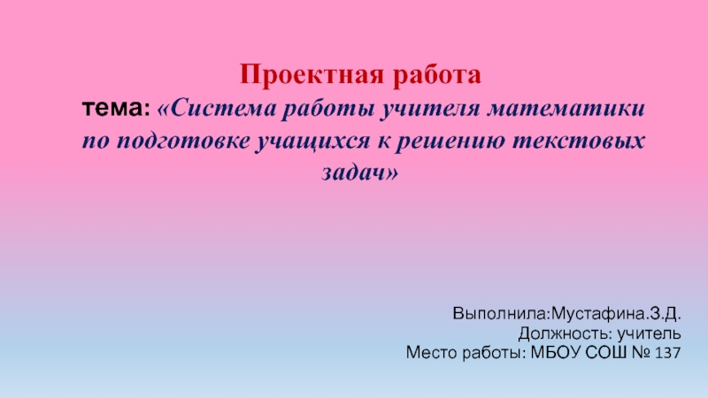 Выполнила:Мустафина.З.Д. Должность: учитель