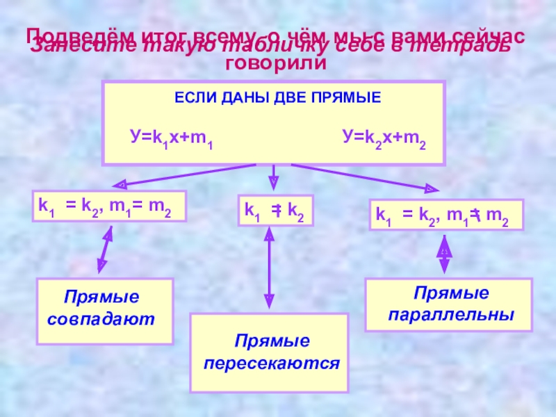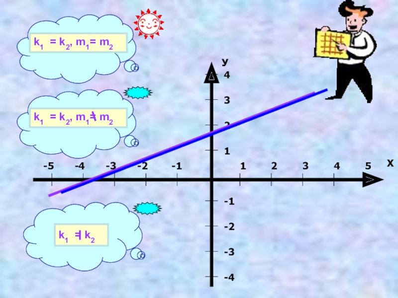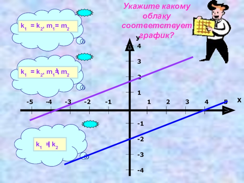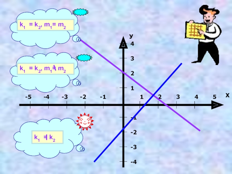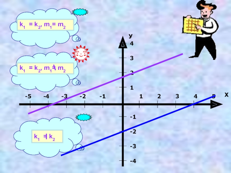 Признаком параллельности служит равенство угловых коэффициентов