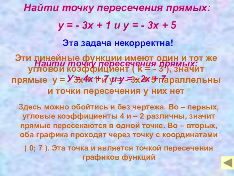 г) у = 7х – 9 и у = *х – 8 (задание некорректно)