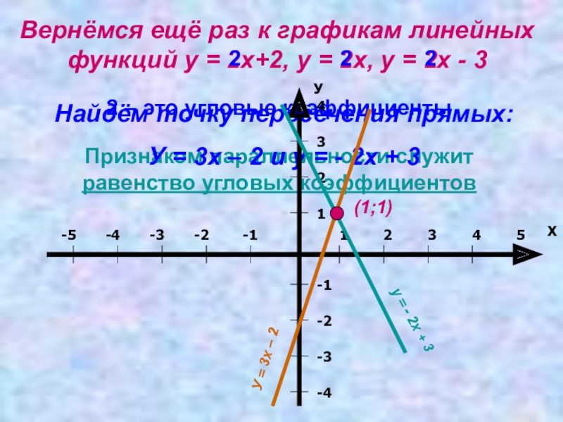 У = 3х – 2 и у = - 2х + 3