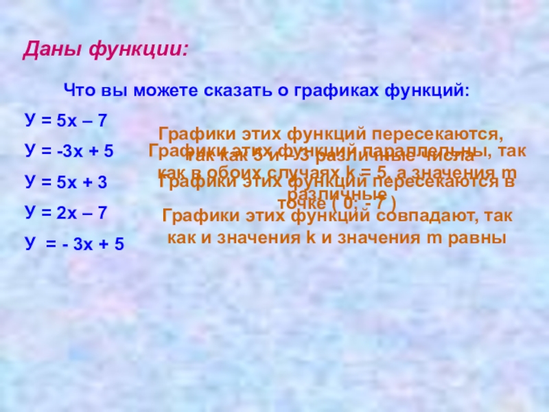 Графики этих функций пересекаются, так как 5 и – 3 различные числа