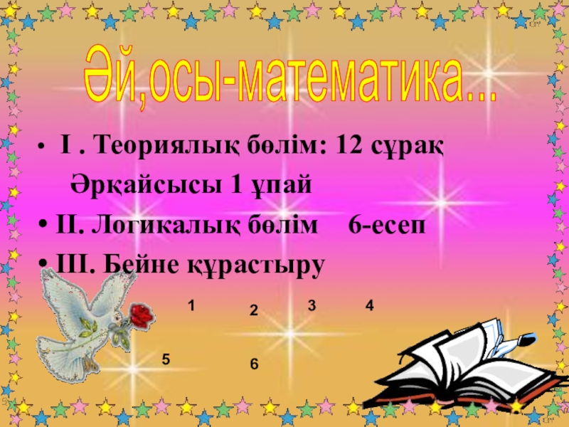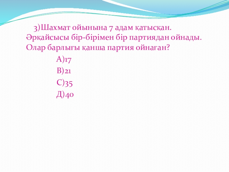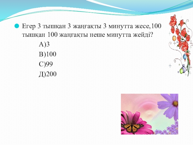 7)2 ит, 3 құс,1 шыбын ,олардың аяқтарының саны қанша?