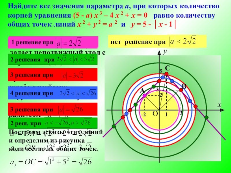 общих точек линий х 2 + у 2 = а 2 и у = 5 - │х - 1│