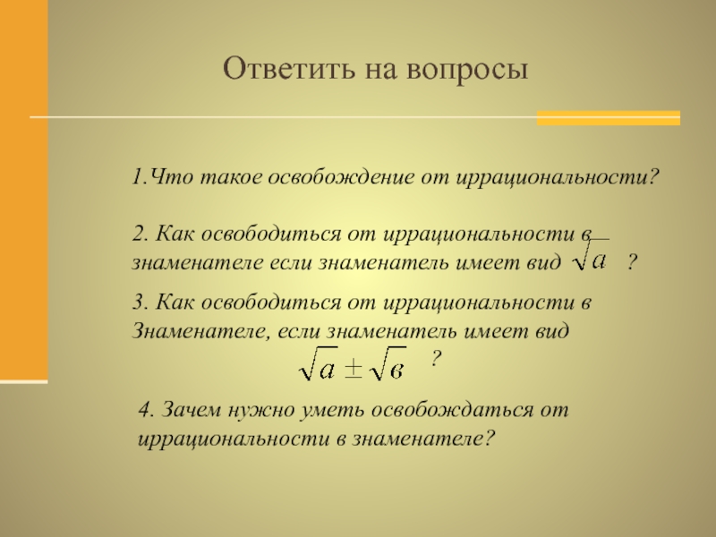 4. Зачем нужно уметь освобождаться от иррациональности в знаменателе?