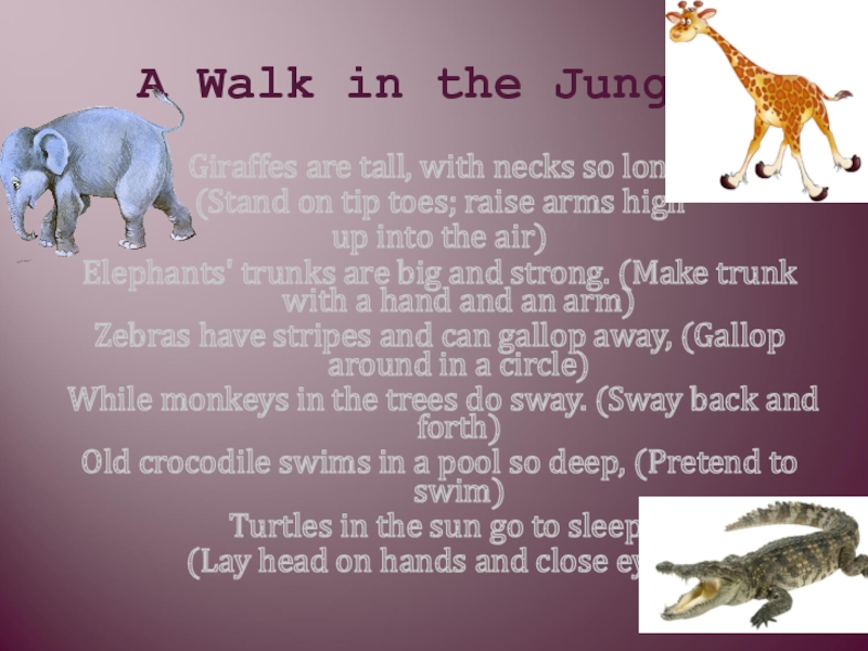 Old crocodile swims in a pool so deep, (Pretend to swim)