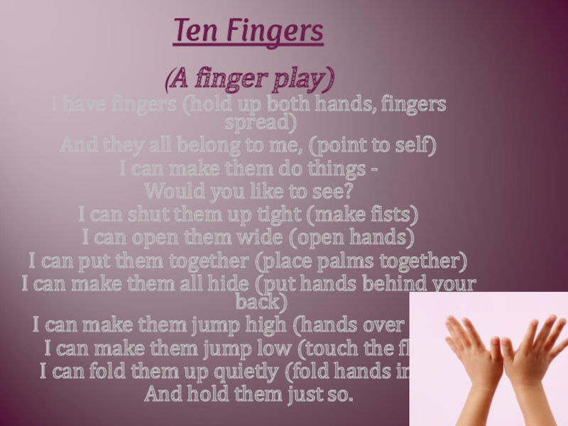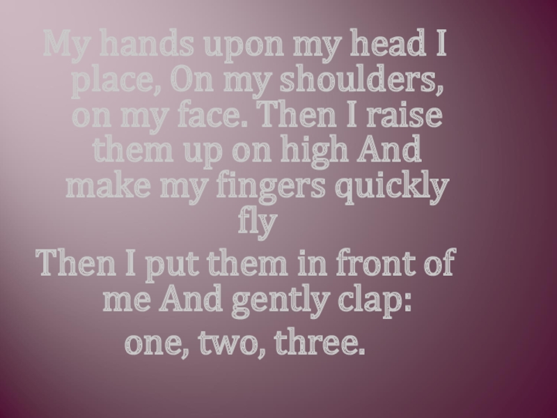 Слайд 18My hands upon my head I place, On my shoulders, on