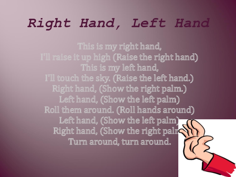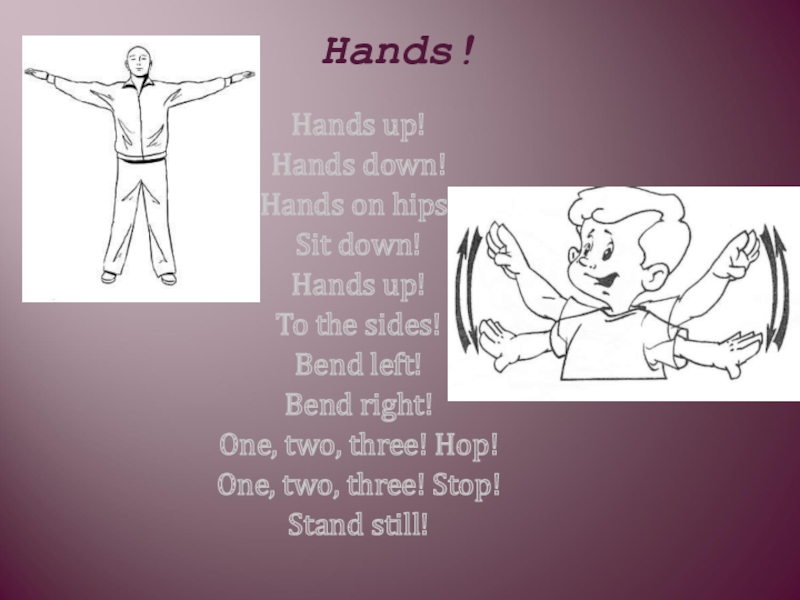 Слайд 17I put my hands upon my hips, I turn myself around.