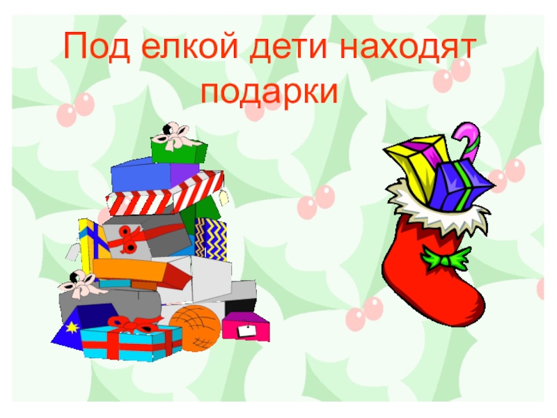 Слайд 5Под елкой дети находят подарки