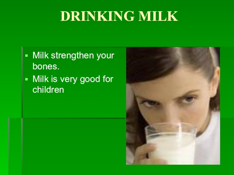 DRINKING MILKMilk strengthen your bones.Milk is very good for children