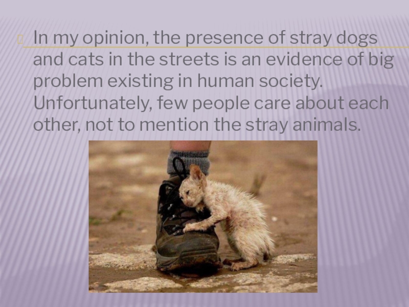 Слайд 4In my opinion, the presence of stray dogs and cats in