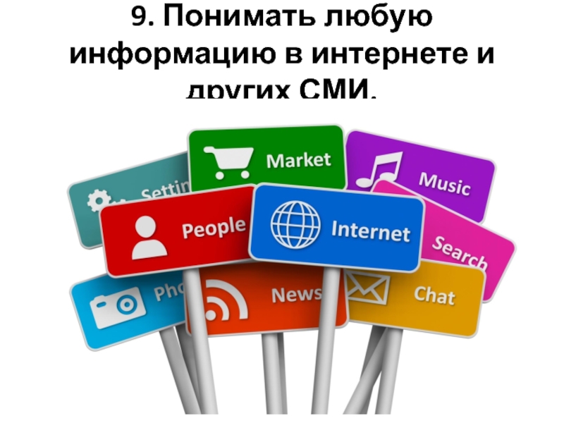 9. Понимать любую информацию в интернете и других СМИ.