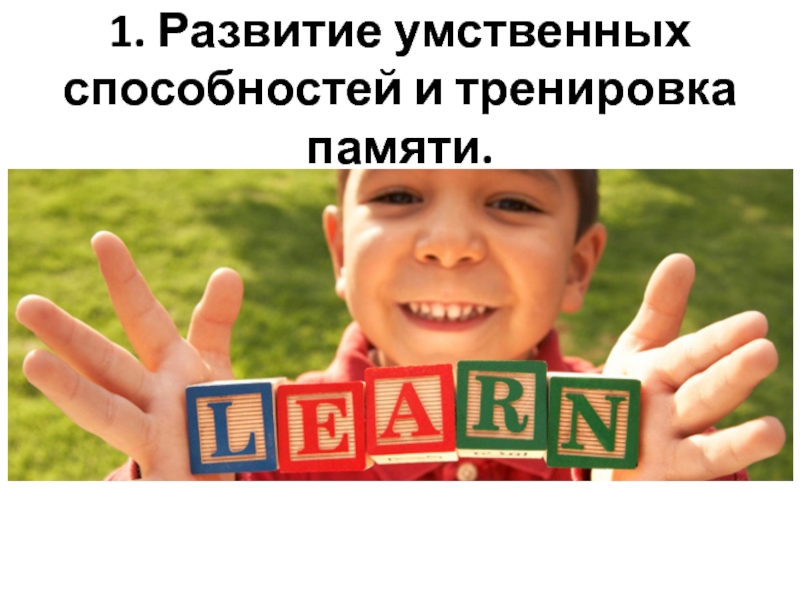 Слайд 31. Развитие умственных способностей и тренировка памяти.