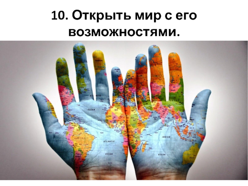 Слайд 1210. Открыть мир с его возможностями.